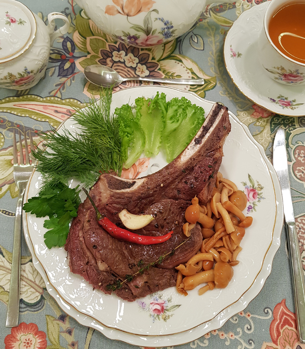 - 2 говяжьих стейка на косточке (весом около 1200 г)