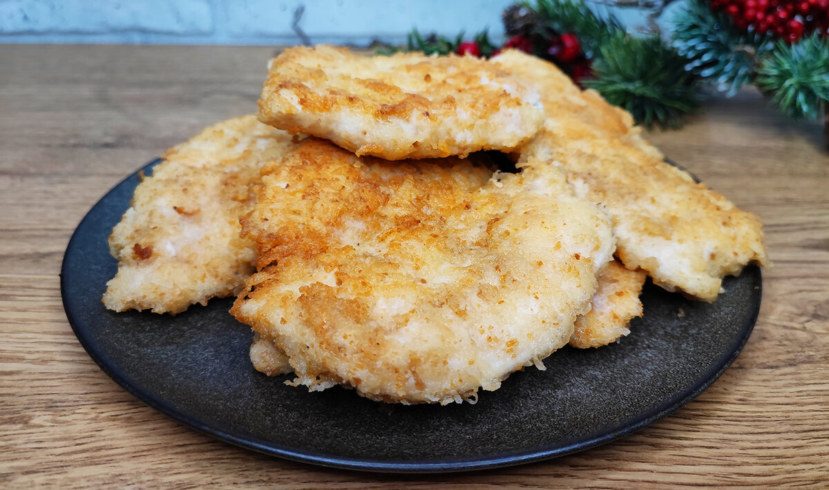 Шницели готовы — мясо получается невероятно сочным, а корочка хрустящей. Это замечательное блюдо удивит даже требовательных гурманов!
