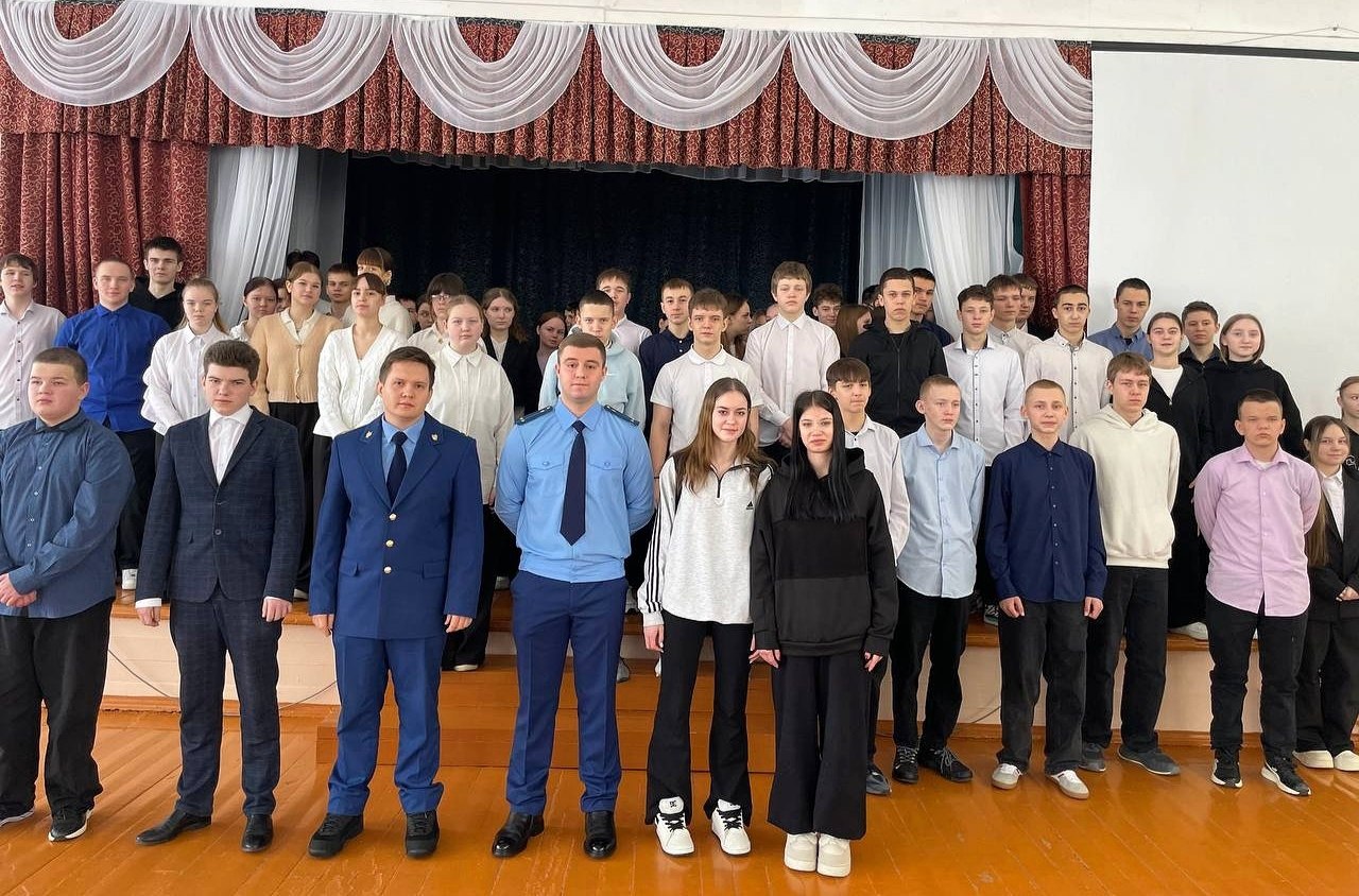 Старший помощник прокурора Усть-Вымского района Егор Иванов и помощник прокурора Даниил Касьянов провели встречу со старшеклассниками школы №1 в посёлке Жешарт.