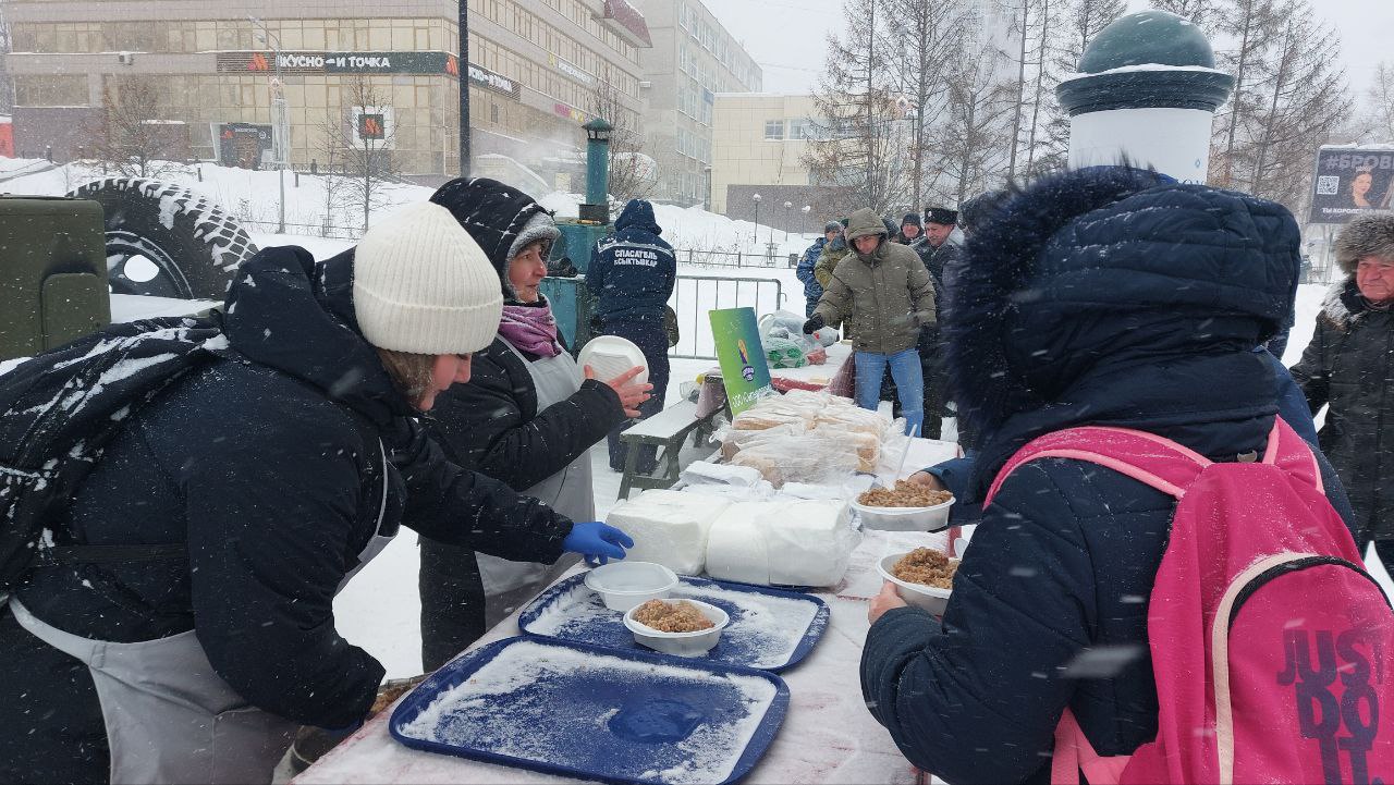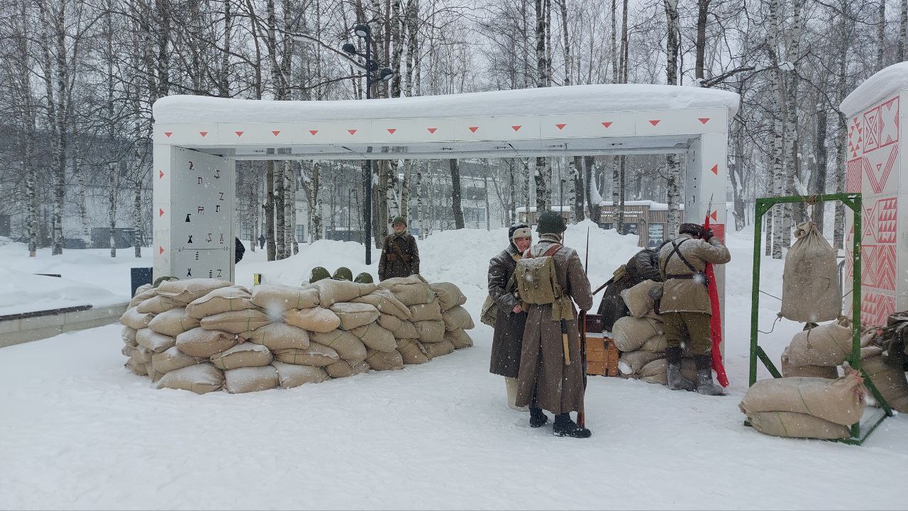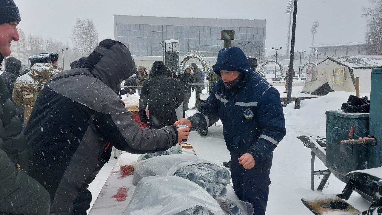 Сейчас на площадке "под часами" проходит тематическая культурная программа в честь Дня защитника Отечества. Несмотря на метель, горожане гуляют, общаются, угощаются вкусной кашей и чаем из полевой кухни. Приходите, площадка работает до 14:00!