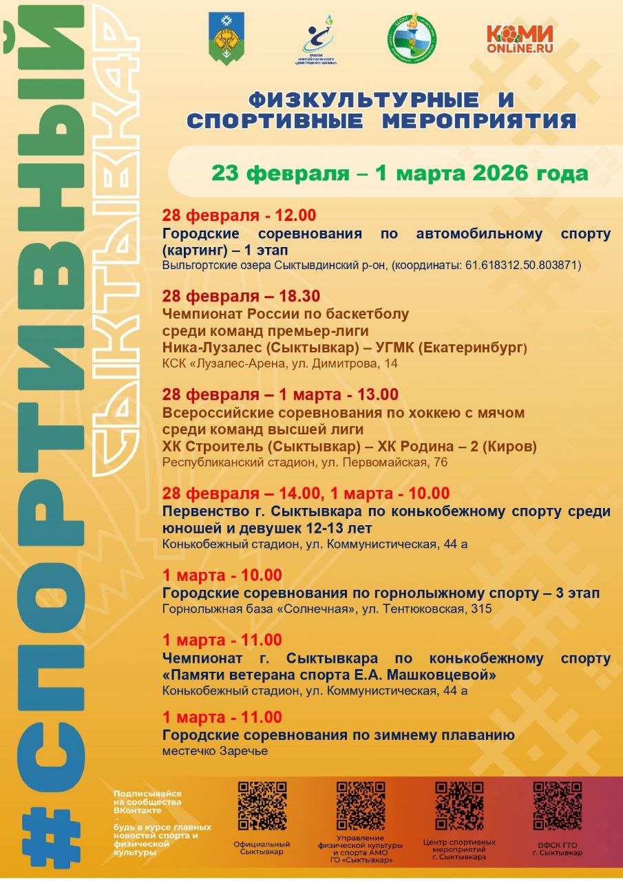 В Сыктывкаре проводится большое количество спортивных мероприятий!Среди них - предстоящая Спартакиада Союза городов Центра и Северо-Запада России, о которой позже расскажем больше.Всех ждём на наши спортивные события.#СпортивныйСыктывкар