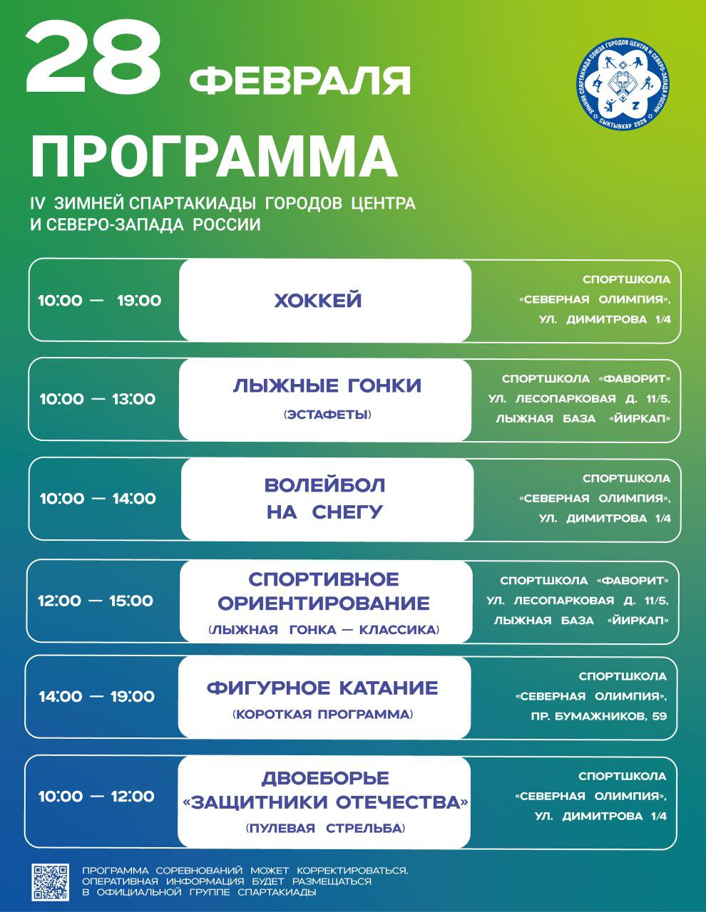 Программа IV зимней Спартакиады городов Центра и Северо-Запада России!