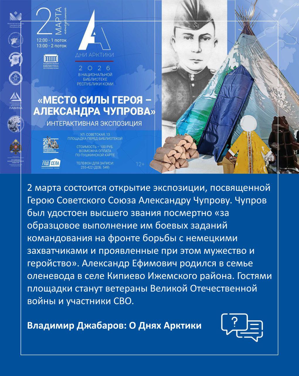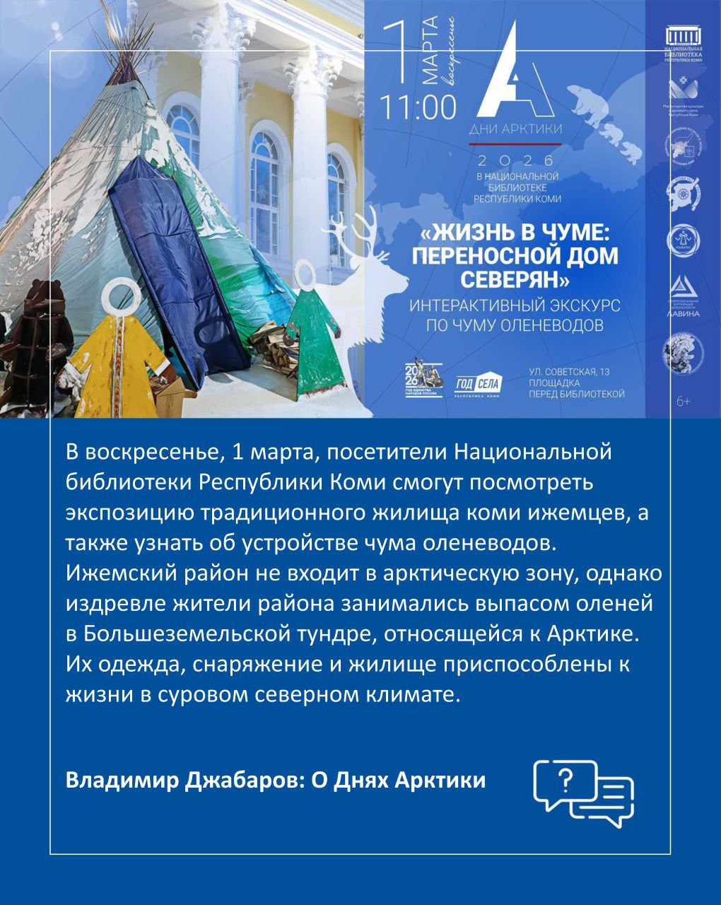 1-2 марта в Национальной библиотеке Республики Коми пройдут мероприятия, посвящённые Дню Арктики, в рамках которых запланированы познавательные экскурсии, интересные лекции и яркая выставочная программа.