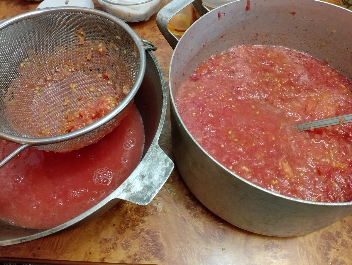 Если же приоритетом является томатная паста, получившийся сок следует нагреть. Затем необходимо использовать специальный мешок (например, от муки или сахара), чтобы отцеживать излишнюю жидкость. Мешок можно подвесить на воздухе или поместить в ванную для удобства.
