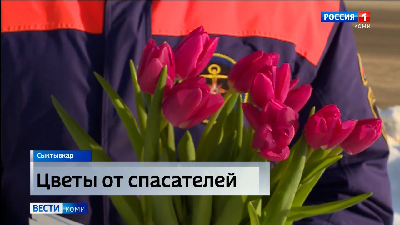 Сотрудники Главного управления МЧС по Коми поздравили жительниц Сыктывкара с наступающим 8 Марта
