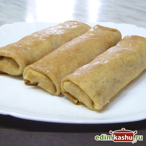 Рыбу очистить от кожи и нарезать на небольшие кусочки. Укладывать полоски рыбы в центр блина и закручивать его в форме конверта или трубочки. Изюминкой будет творожный или сливочный сыр, смазанный на блин.