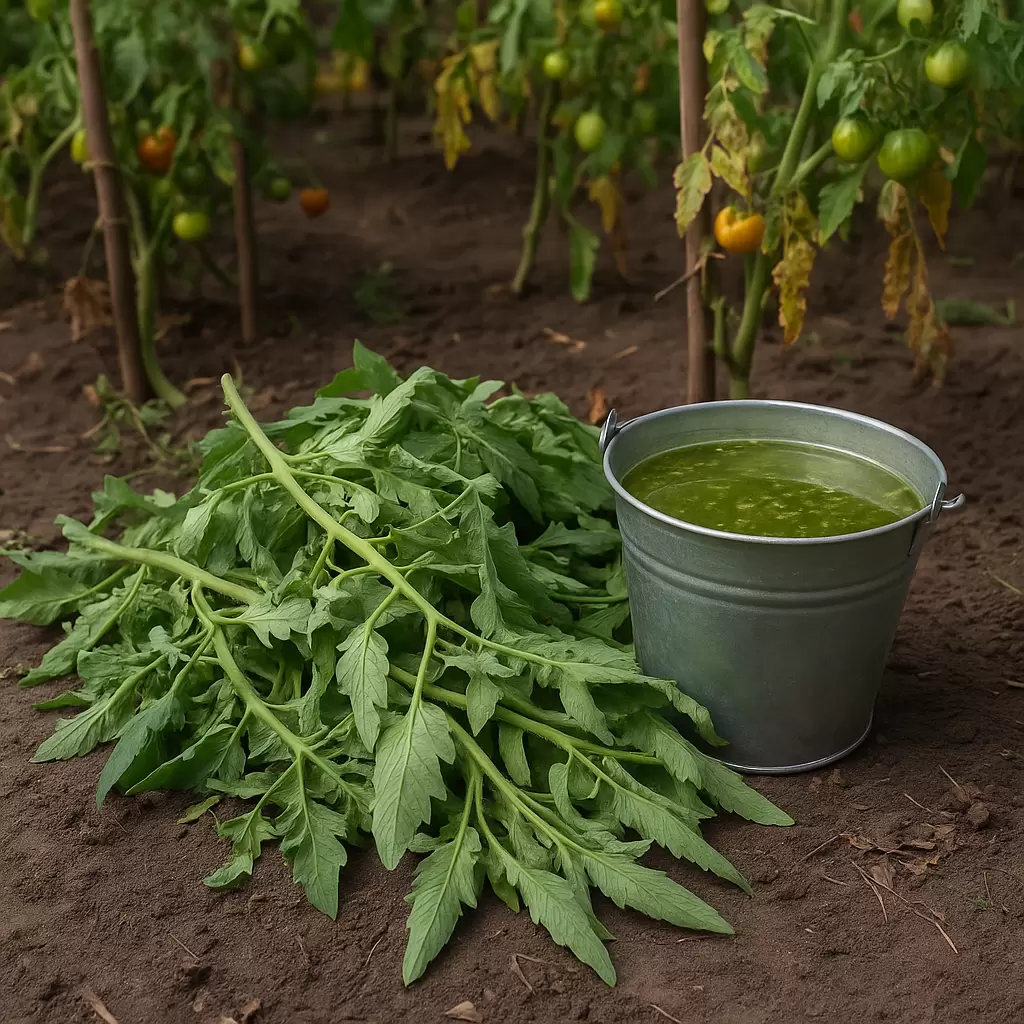 Листья томатов содержат вещества, такие как соланин и томатин, которые эффективно отпугивают насекомых-вредителей. Чтобы создать настой для опрыскивания растений, выполните следующие шаги: