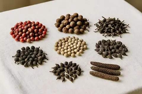 Специи имеют магическую силу превращать простые блюда в кулинарные шедевры, и ароматные перцы — одни из самых интересных их представителей. Душистый перец, известный как «ямайский», не имеет четкой вкусовой идентичности, а сочетает в себе ноты гвоздики, корицы и мускатного ореха. Эту пряность начали использовать еще до открытия Америки, а позже в XVII веке она завоевала популярность в Европе.