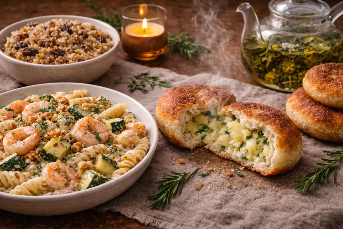 Чтобы оставаться сытым и энергичным, стоит делать акцент на сложные углеводы (крупы, макароны), растительные жиры (масла, орехи) и такие питательные ингредиенты, как грибы и бобовые. Представляем вашему вниманию четыре увлекательных рецепта, которые доказывают, что постная еда может быть как разрешенной, так и по-настоящему вкусной и аппетитной — от итальянской пасты до татарских беляшей!