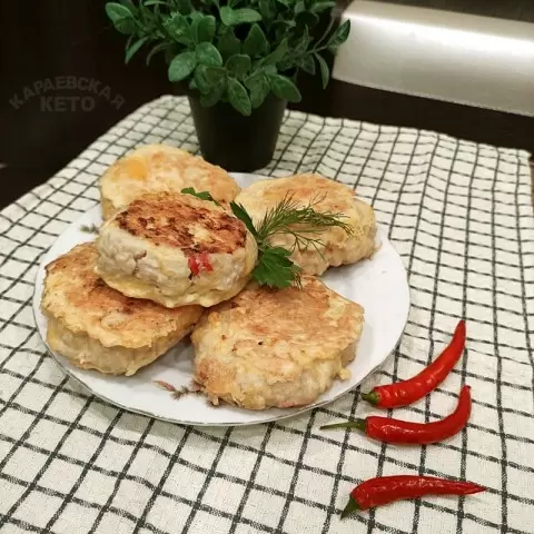 1. Для начала необходимо сделать фарш. Прокрутите куриную грудку, лук и острый перчик через мясорубку. Затем тщательно перемешайте получившуюся массу, добавив миндальную муку, соль и яйцо.