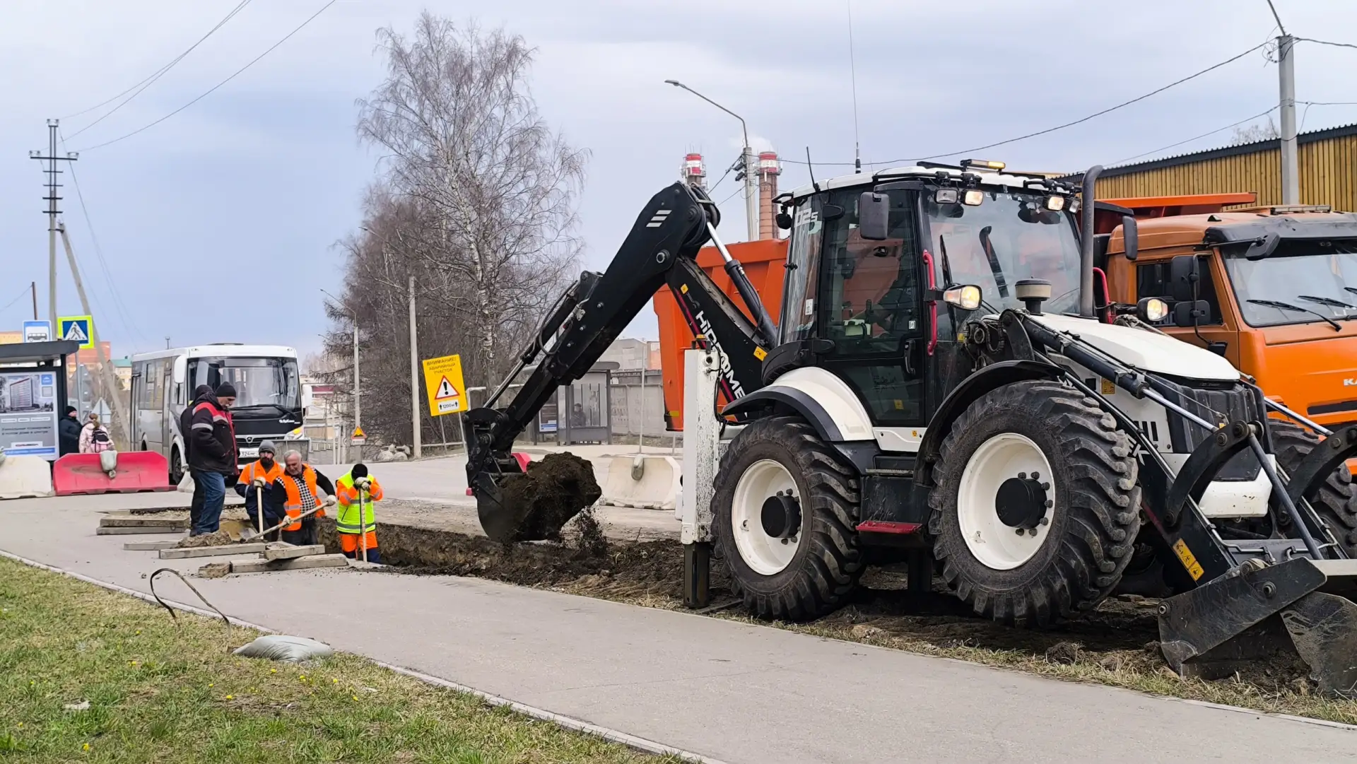 Подрядчик занимается обустройством заездного кармана для остановочного пункта рядом с ЖК «Атлантида». Он будет расположен чуть дальше прежнего места.
