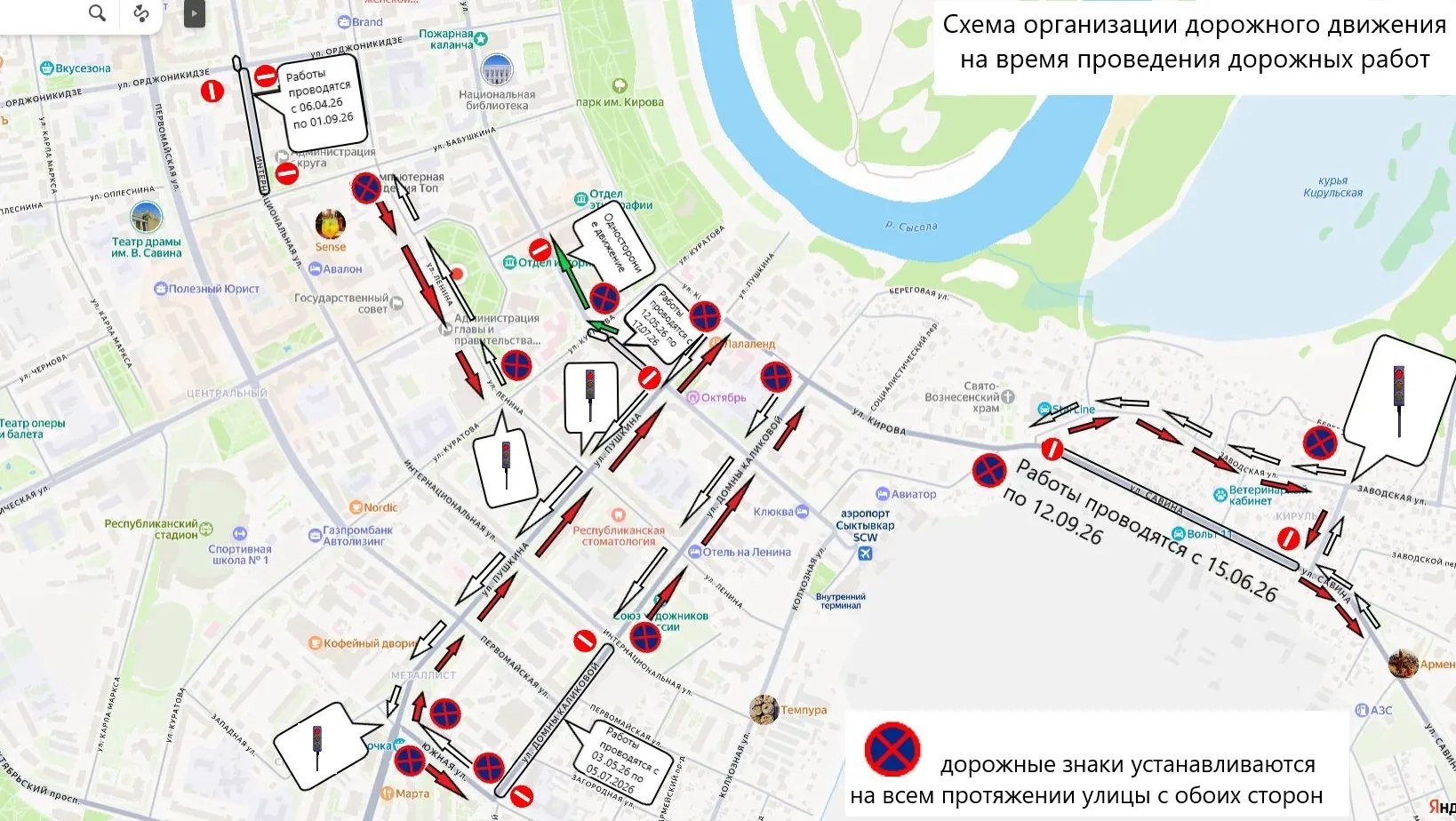На период перекрытий администрацией Сыктывкара для обеспечения движения автотранспорта будет организовано двустороннее :