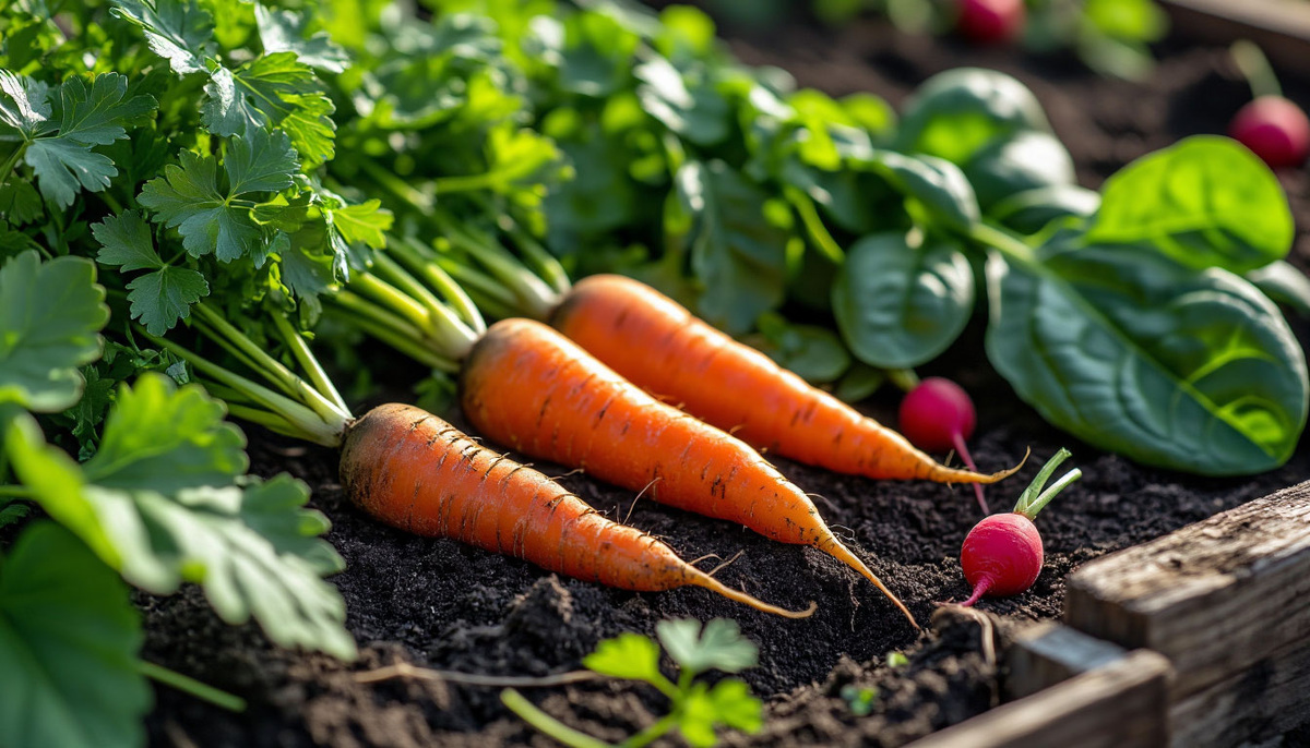 - Шпинат: Особенно хорошо растет в северных регионах, где жара спадает. Эта культура предпочитает влажную почву и полутень. Выбор устойчивых сортов, таких как «Гусар» и «Рампоушен», гарантирует успешный урожай.