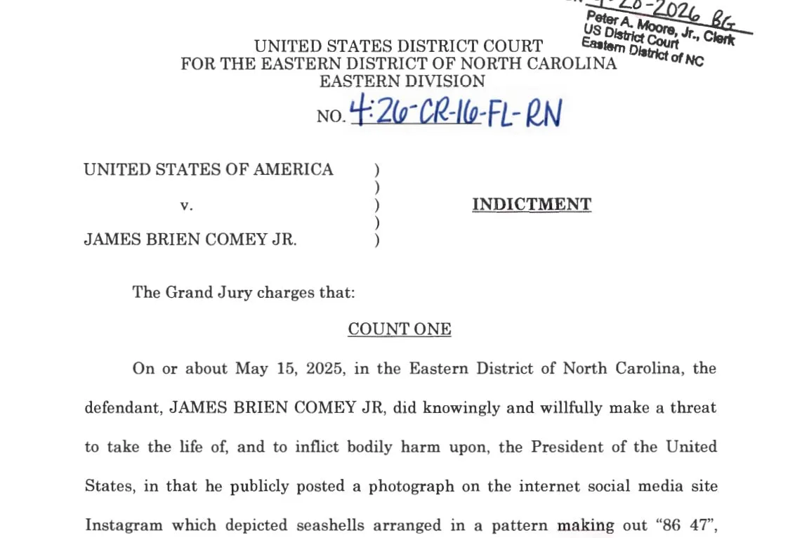 "Коми предъявлены обвинения в связи с его прошлогодней публикацией в Instagram* ракушек в виде числа "8647", — сообщил корреспондент Fox News Билл Мелугин.